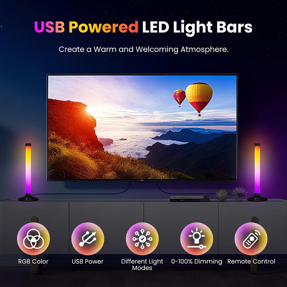 【APP&Remote Control 】: The LotusLamp X application allows you to easily manage the LED lights of your TV, control brightness, change colors, scenes, modes, set timers, etc., and achieve all of this through a 24 key multifunctional remote control