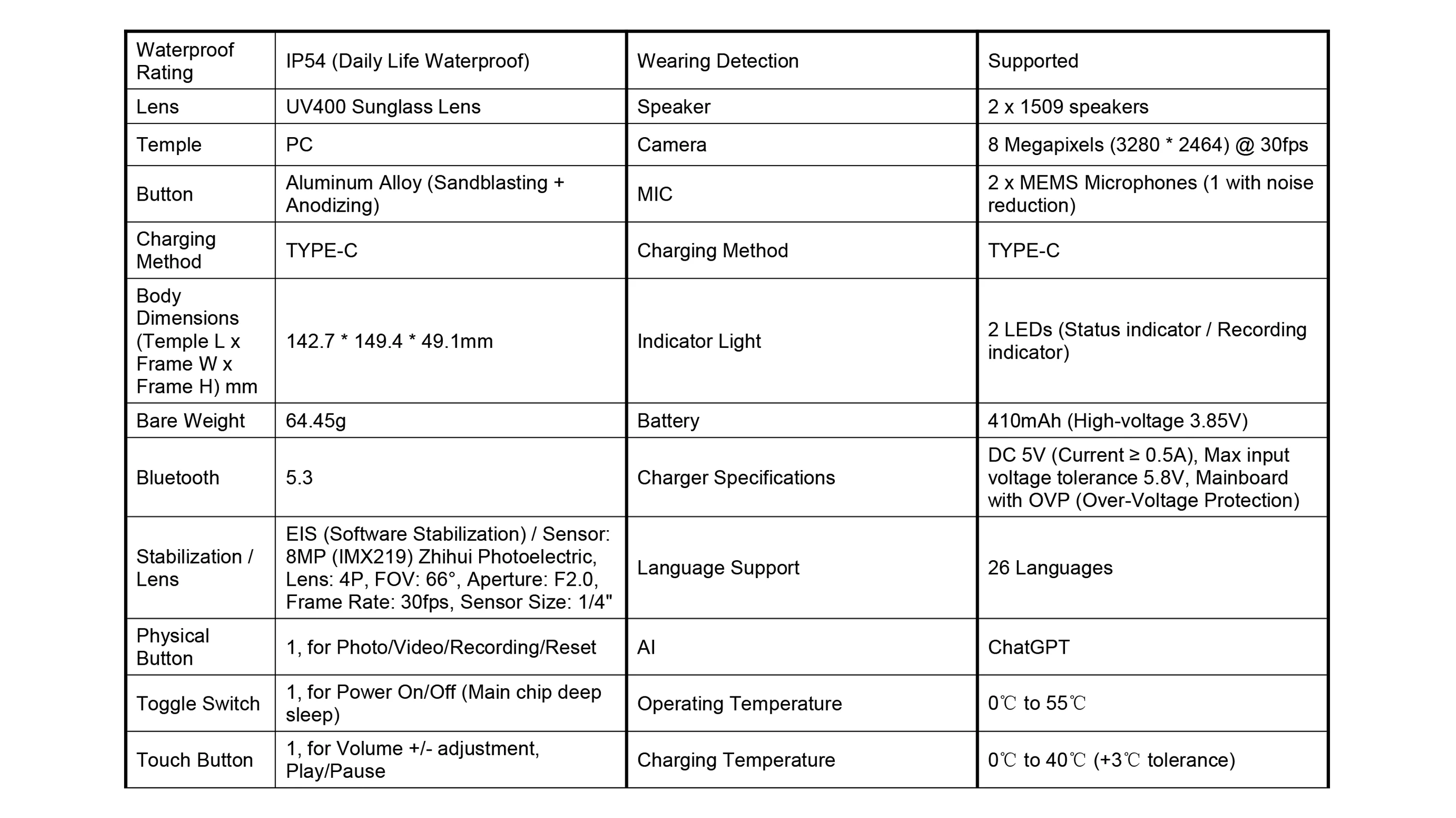 Multifunction 4K camera, Bluetooth calling, voice assistant, music player, real-time translation.Compatible with multiple devices (iOS, Android, and more)