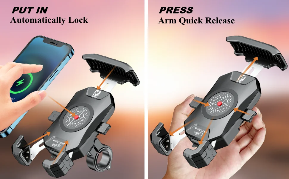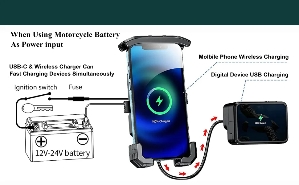 As long as your smart phone supports Qi 15W / 10W / 7.5W / 5W wireless charging mode, this motorcycle phone mount can charge them.
