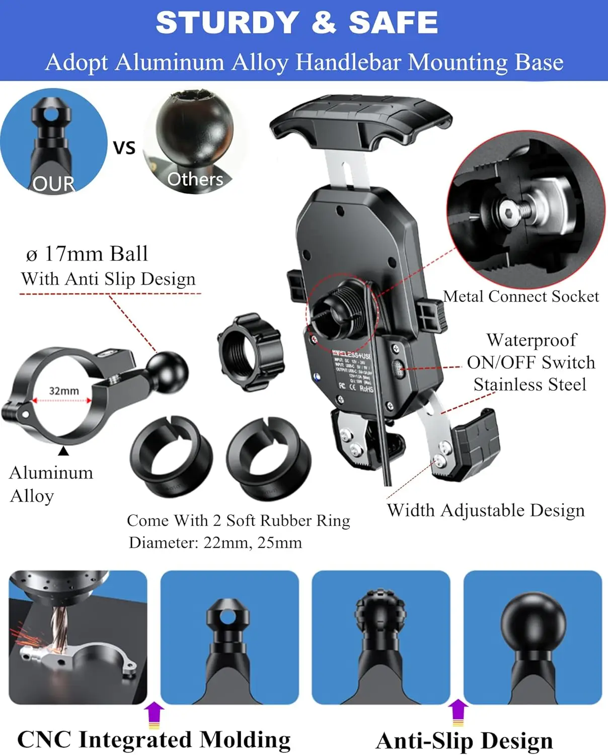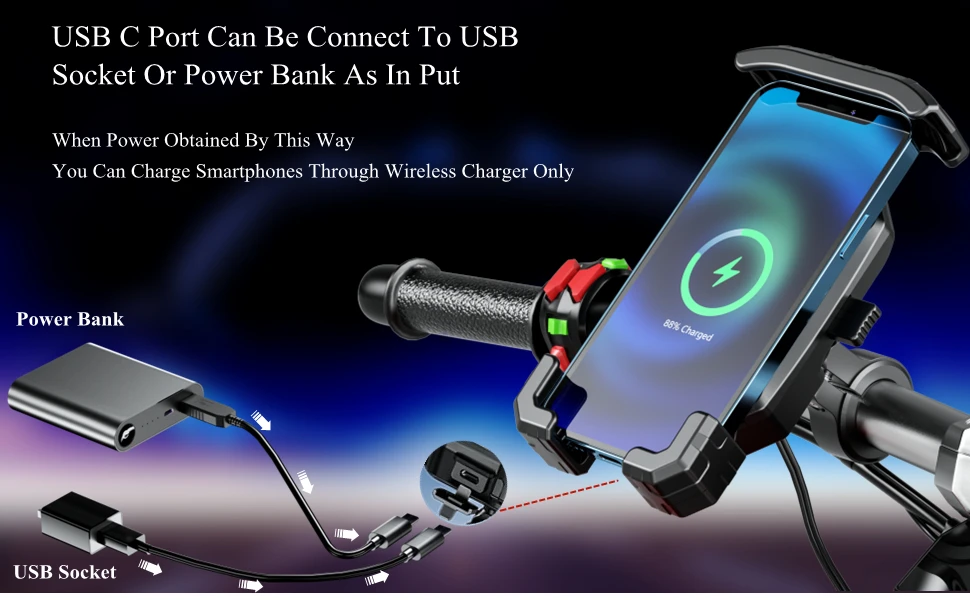 Three models: Motorcycle only Phone Holder/with QC 3.0 USB Quick Charger / with Wireless Charger