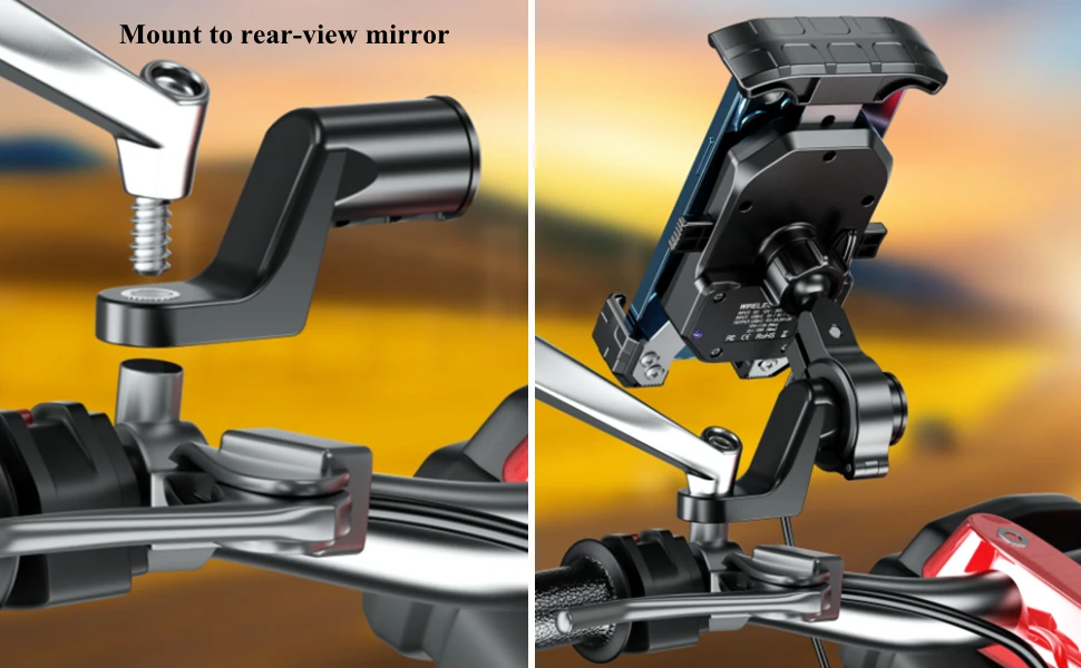 A mirror extension rod is also included in the package, allowing you to easily attach the phone holder to the motorcycle mirror frame.