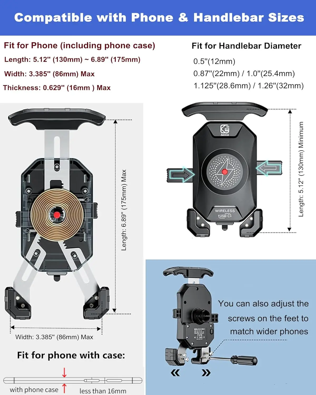• Phone Size Support: 3.5~6.5 inch phone