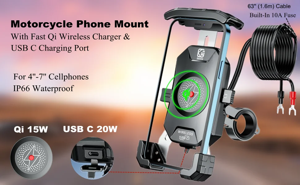 This motorcycle phone mount wireless charger can charge which models of mobile phones?